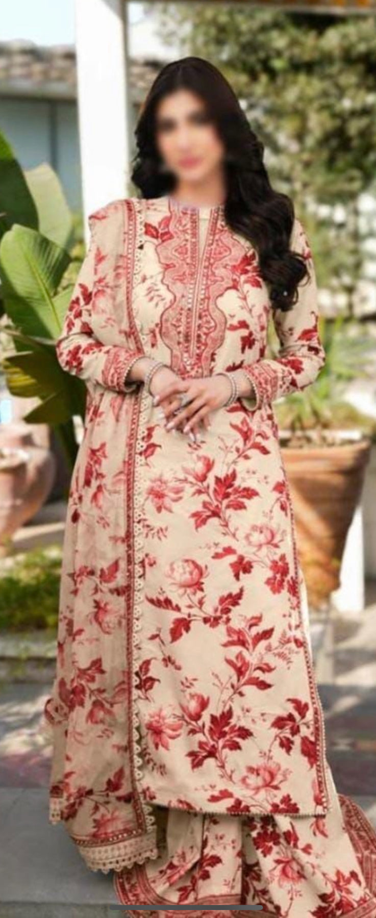 PRINTED LAWN FRONT WITH HEAVY EMBROIDERED 9.MM NECK PATCH/DAMAN/CHOWKS